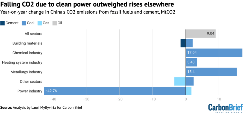 However, they remain only 1% below the latest peak, implying that any short-term jump could cause China’s CO2 emissions to rise to a new record.