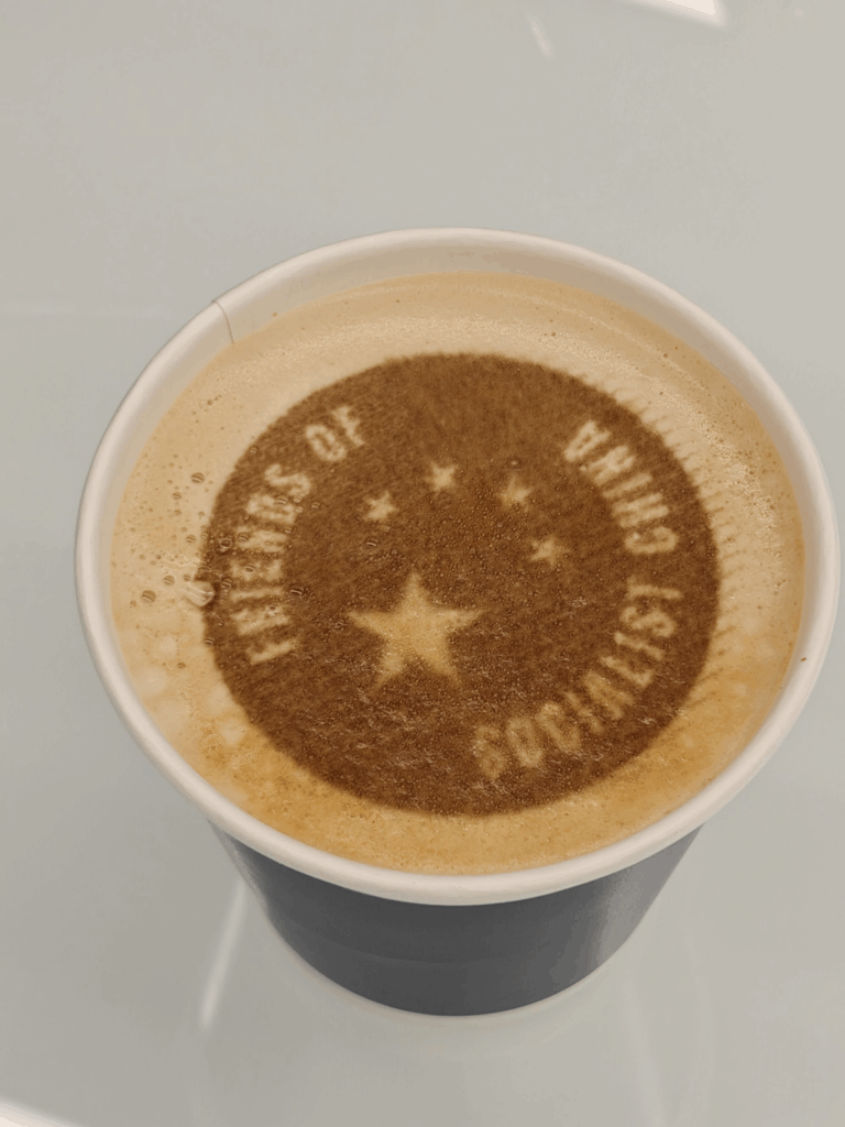 One of the delegation’s last visits was to the Lenovo Shanghai Future Center, showcasing the latest in AI, robotics and smart city technology. One particularly memorable demonstration was an AI-assisted coffee machine which produced a cappuccino with a chocolate sprinkle Friends of Socialist China logo!