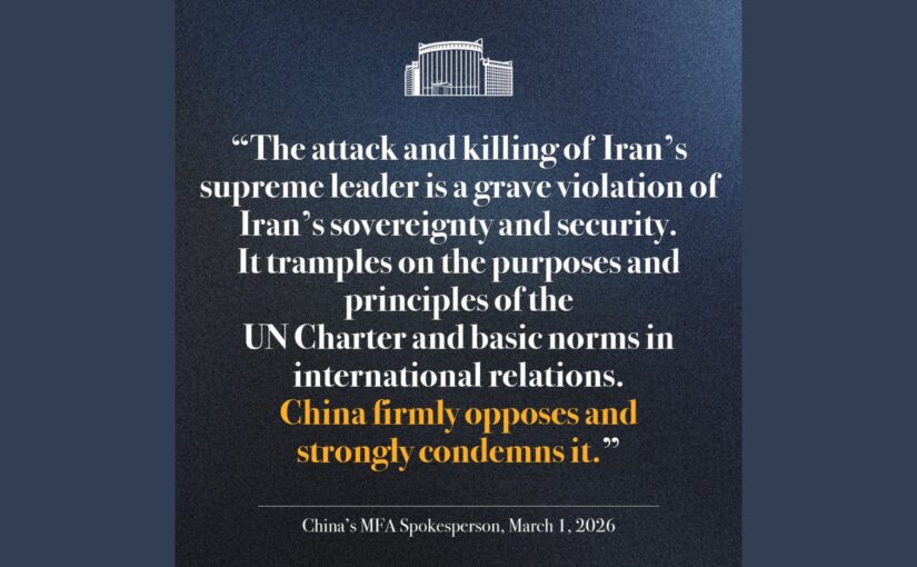 On March 1, a Foreign Ministry spokesperson stated that, “China firmly opposes and strongly condemns the attack and killing of Iran’s supreme leader.”