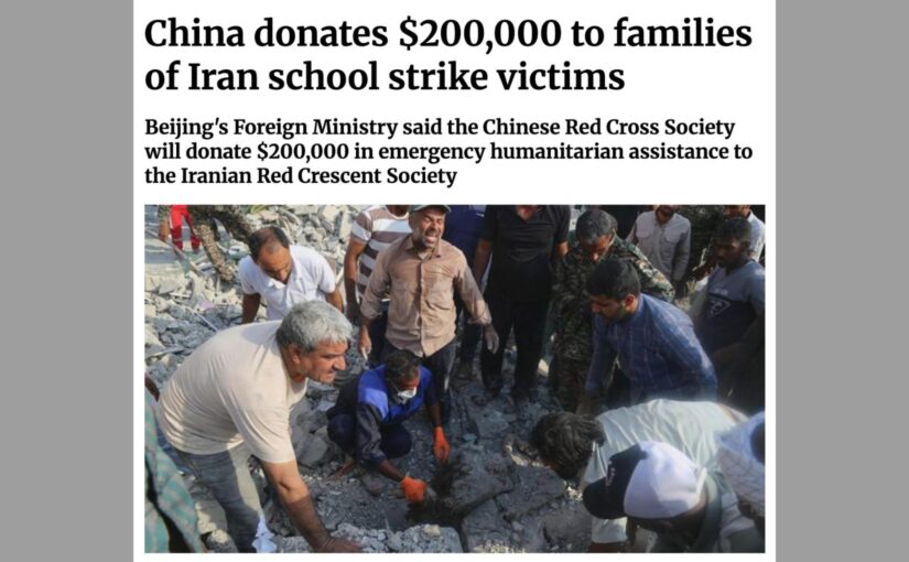 Following the bestial war crime committed by the United States on February 28, when it murdered at least 175 civilians, the overwhelming majority of them young schoolgirls, in its missile attack on the Shajareh Tayyebeh Elementary School in the southern Iranian town of Minab, the Red Cross Society of China has decided to provide the Red Crescent Society of Iran with US$200,000 in emergency humanitarian assistance as special funds to support the bereaved parents.